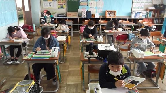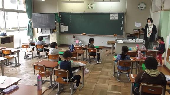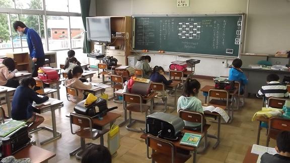 5月20(水)は1・3・5年生、21日(木)は2・4・6年生の分散登校日でした。家庭学習の課題確認や、漢字、アルファベットの練習などを行いました。