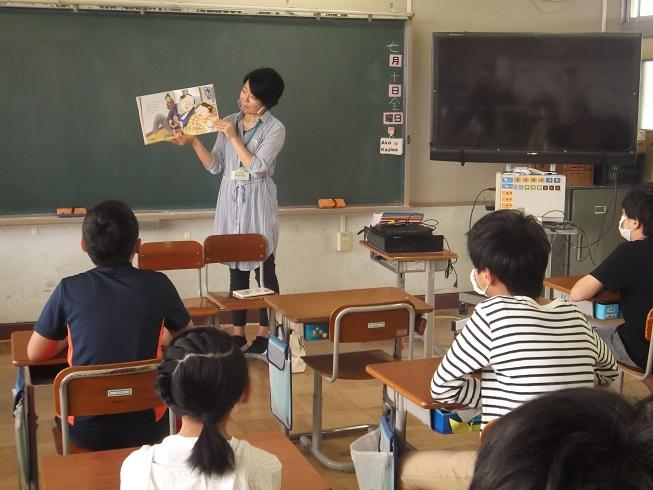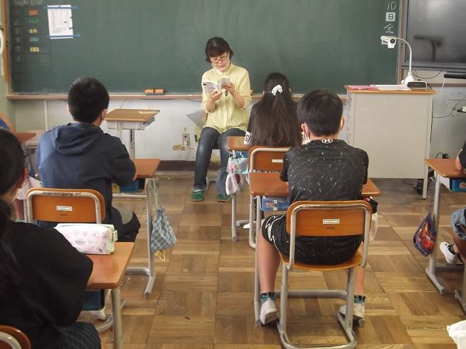 お話ポットの会の皆様による、読み聞かせがありました。今年度になって初めての実施です。お話ポットの会の皆様は、透明マスクを着用しての読み聞かせをしてくださいました。久しぶりの読み聞かせに、児童も楽しんで時間を過ごすことができました。