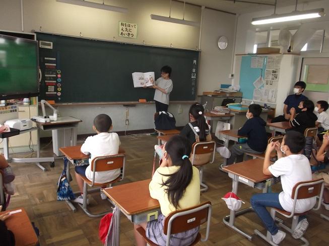 お話ポットの会の皆様による、読み聞かせがありました。今年度になって初めての実施です。お話ポットの会の皆様は、透明マスクを着用しての読み聞かせをしてくださいました。久しぶりの読み聞かせに、児童も楽しんで時間を過ごすことができました。