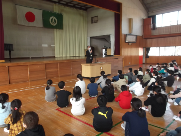 交通指導員さんや警察官の方から道路の歩き方や自転車の乗り方についてお話をいただき、