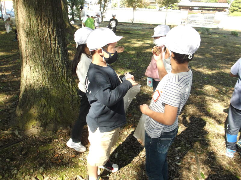 生活科「あきとなかよし」でおもちゃ作りをするための材料を集めに行きました。