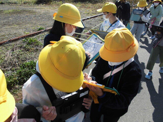 4年生は、総合「防災マップを作ろう」の学習で、地域の探検に行ってきました。中・末広方面、富田・木幡方面、東町・富田方面に分かれて調べてきました。