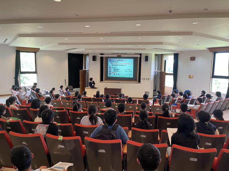 海浜自然の家に到着しました。入所式とオリエンテーションが始まりました。移動の疲れも感じさせず、これからの活動を楽しみにしているのが伝わります!