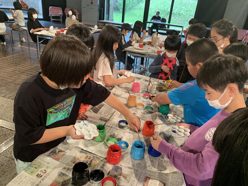 2日目はあいにくの雨でしたが、ふくろうの絵付けを体験しました。