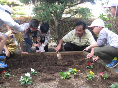 14日(木)、グリーンタイムに、パンジーの苗とチューリップの球根を植えました。