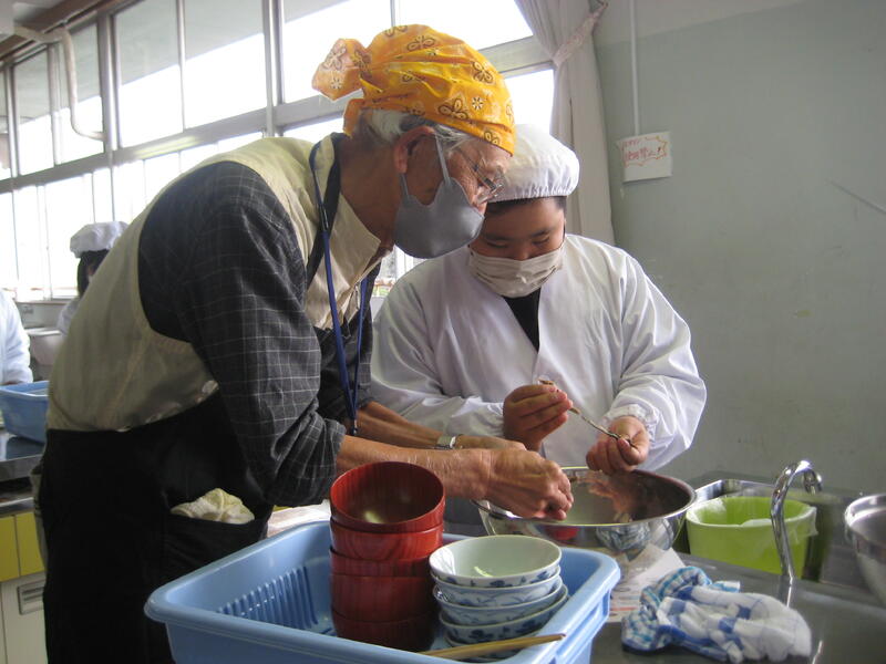 この日は学校支援ボランティアの方々にもお越しいただき、ご飯と味噌汁を作りました。