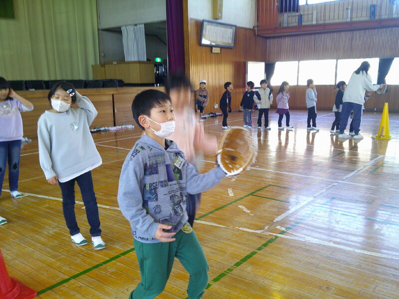 全国の小学校に大谷選手からプレゼントされたグローブを、1年生も使用しました。使ってみたい子たちが昼休みに体育館に集まり、仲良く順番に使っていました。グローブを使ってのキャッチボールが初めての子も多く、野球に触れる良い機会となりました。