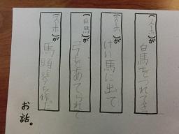 もう1人を紹介します。①スーホが白馬をつれてきて ②スーホがけい馬に出て ③ 白馬が弓に当てられて