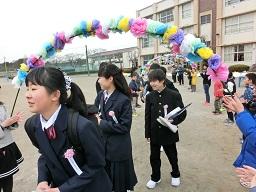 アーチをくぐると、えのきがあります。泉小のシンボルですね。その側で写真撮影が行われました。