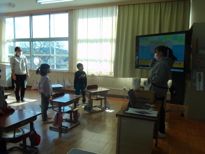 1年の英語活動です。音楽に合わせてお体のいろいろな箇所の言葉を覚えています。