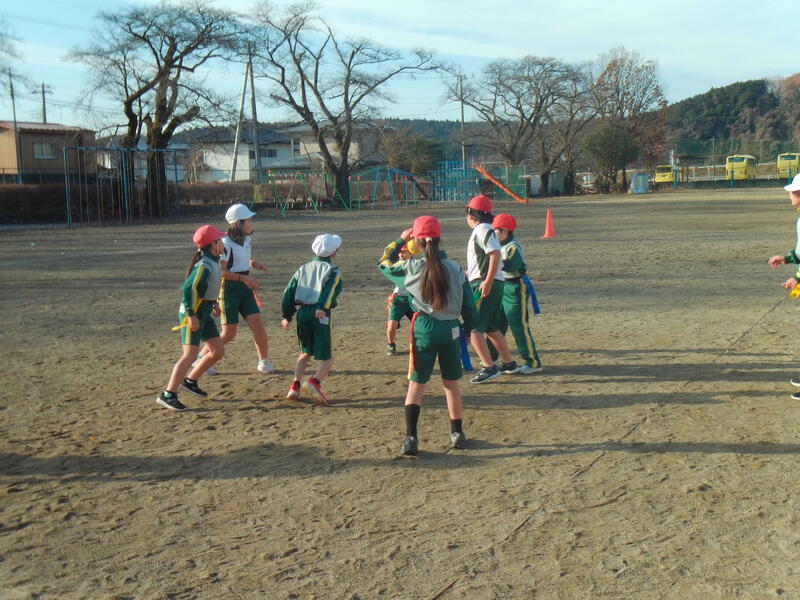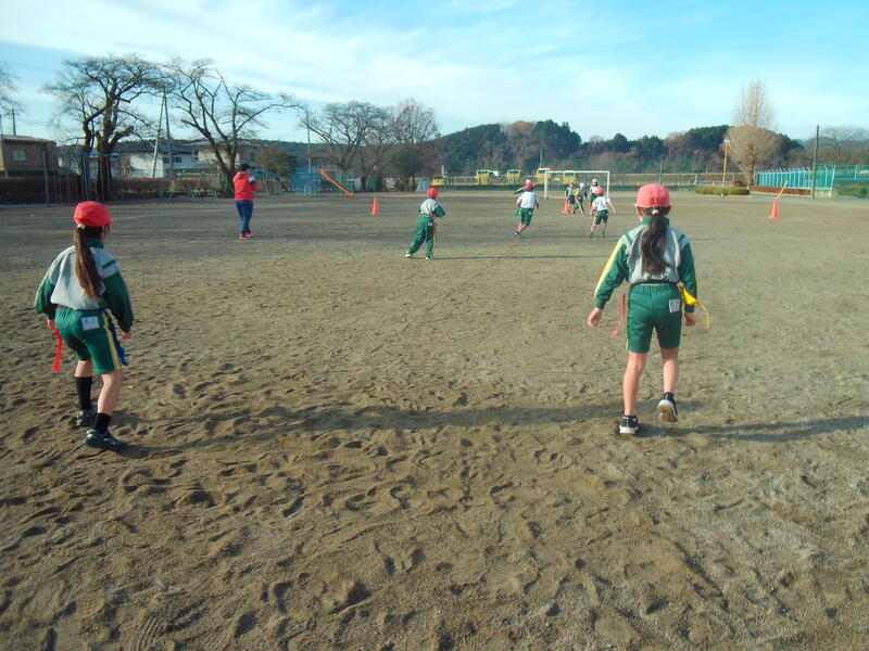 4年の体育です。タグラグビーというゲーム型のスポーツです。