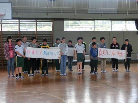 4月25日(水) ふれあいタイム(児童集会)で、各学級のめあての発表を行いました。