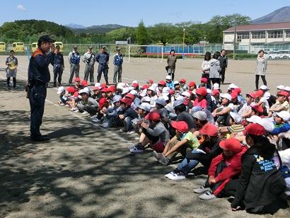 4月26日(木) 2校時に避難訓練を行いました。校庭に避難後、消防署の方から指導講評をいただきました。