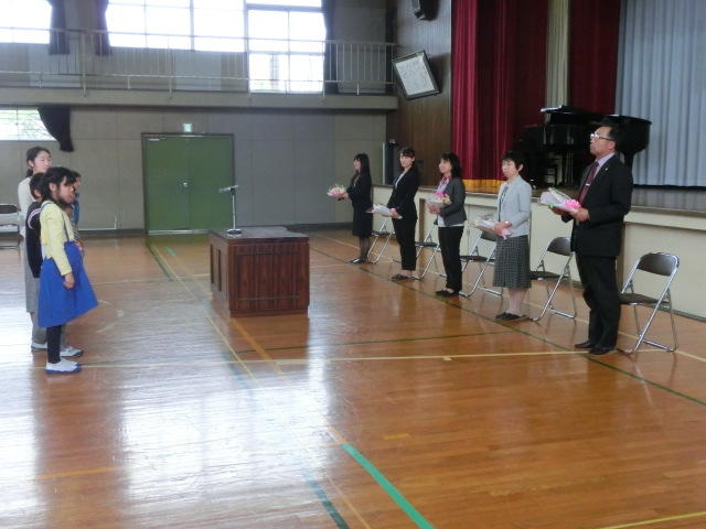 新任式を行いました。今年は5名の先生が着任しました。