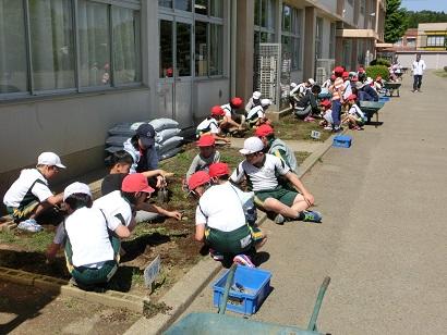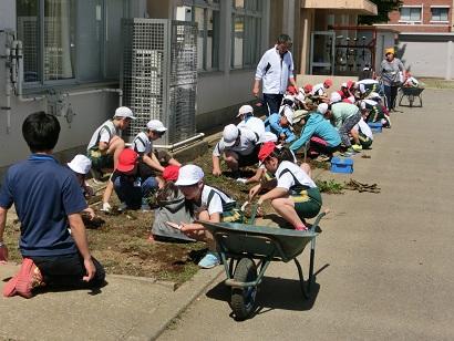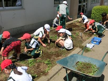 5月14日(月)、ふれあいタイムで花壇づくりの準備をしました。