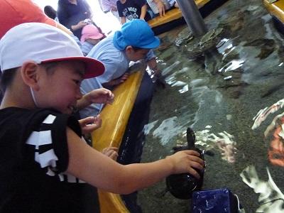 続いて、展示ゾーンに移動しての見学です。実際に生き物にさわれるコーナーがありました。