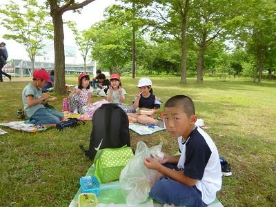 ようやくお昼になりました。それぞれ好きな場所を見つけて、楽しみにしていたお弁当です。