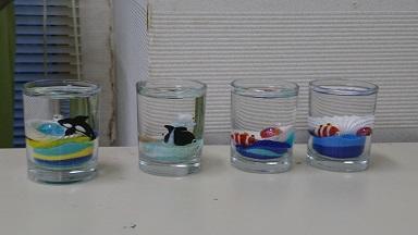 着いたら、はじめはおもしろ魚館の体験ゾーンで創作活動「まゆクラフト」の体験です。