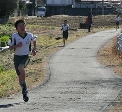 6年生女子1位で走っています。次は5年生女子1位です。
