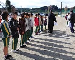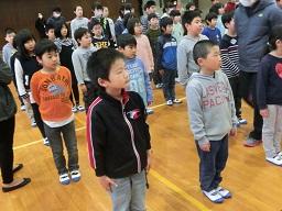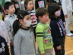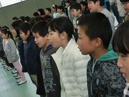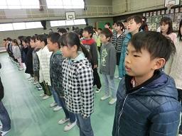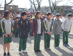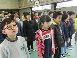 5年生の役員の子がここで控えています。代表あいさつをするのはM君です。