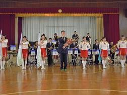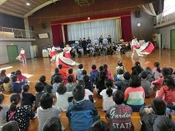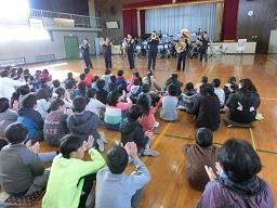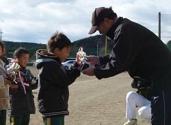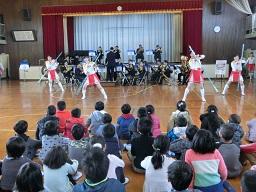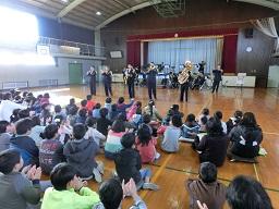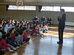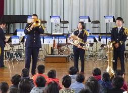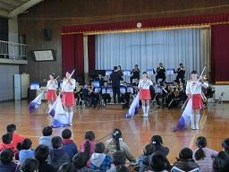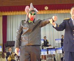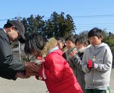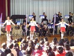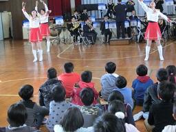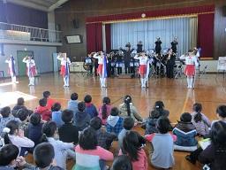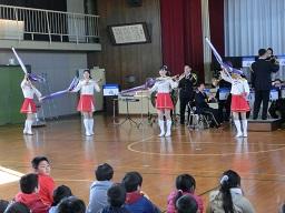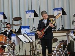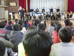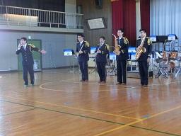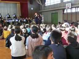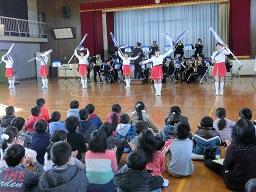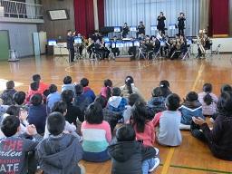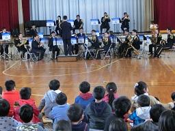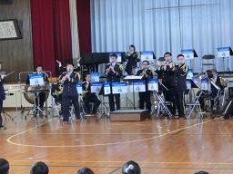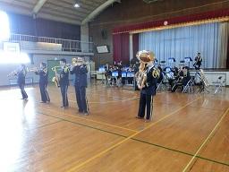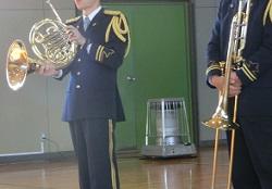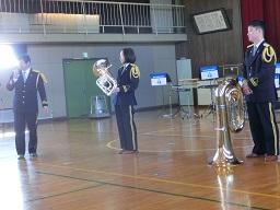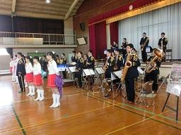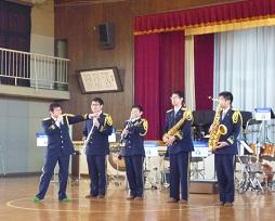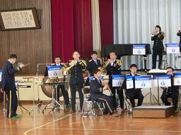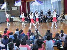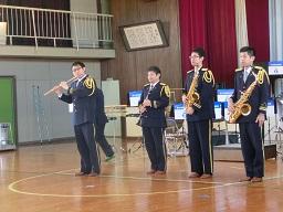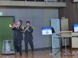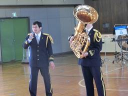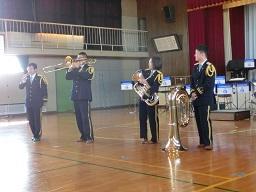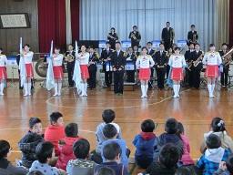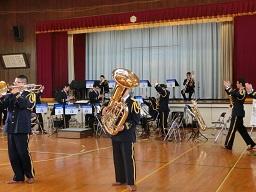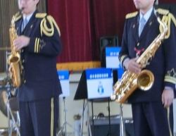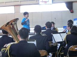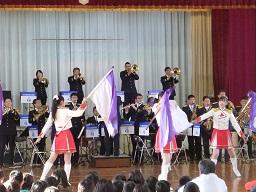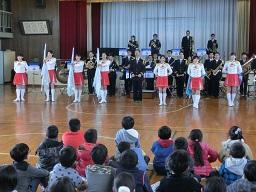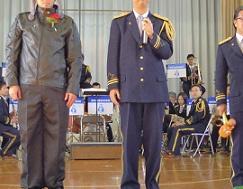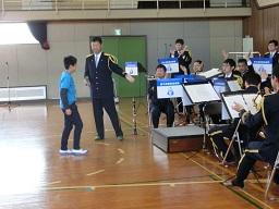 音楽隊の皆さんもよく聞いてくれています。6年生のUS君が花束を渡しました。指揮の副団長さんが受け取ってくれました。