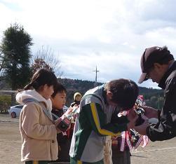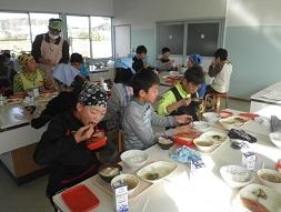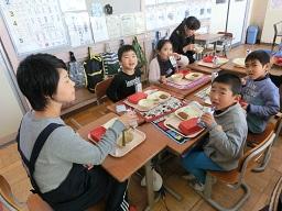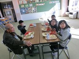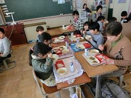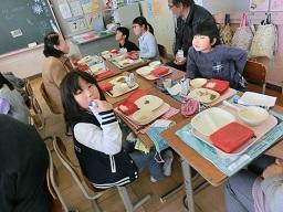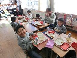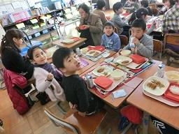 昔の遊びが終わって、もう一つの楽しみは給食を一緒に食べることです。