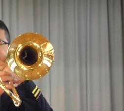 トロンボーンです。音を変えるときはスライドを動かします。