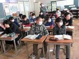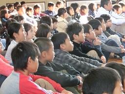 下級生もお話をよく聞いています。上の写真は3年生です。