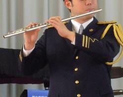 4つの楽器を演奏するお巡りさんが前に出ました。最初の楽器はフルートです。