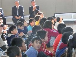 握手をしていますね。見ていた子供たちも拍手をしています。