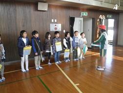代表で6年生のTMさんがもらいました。次は漢字検定合格者です。今回は15名が合格しました。代表は6年生のTT君です。