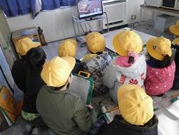 昨日とは違うカメラの画像です。先生の話をきいている子どもたちです。