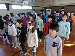 今日の昼休みの後、卒業式の練習を行いました。今日は6年生の入場から始めました。在校生は拍手で迎えます。