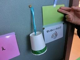 緑のコップの中は「クリップ」が入っています。子どもたちは喜んでやっています。最後に毎日おみくじは引いていきます。一人はこの日は「小吉」が出ていました。