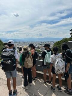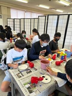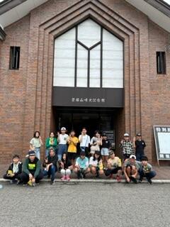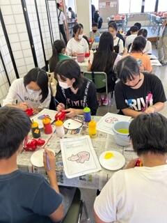 昼食後、飯盛山へ。白虎隊のお墓にお参りし、さざえ堂の不思議を体験しました。暑いので、体調に気を付けながら楽しんでいます。世界に一つだけの赤べこ制作中です。