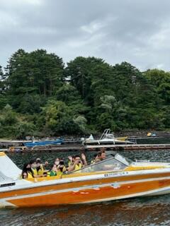 朝食後、予定通り、ホテルを出発しました。昨夜の雨の影響を考え、一部行程を変更しました。曇り空ですか、みんな元気に楽しんでいます。檜原湖では、モーターボートに乗って、スリル満点でした。