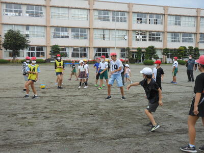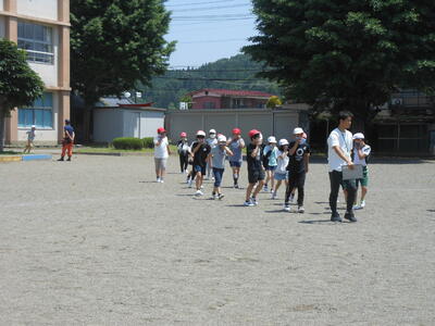 体育委員会の企画で、「走力アッププロジェクト」が始動しました。これは、本校の運動に関する課題である「走力」を伸ばすために、6年生の提案から生まれたものです。1回目の今日は、昼休みを使って「ケイドロ」をやりました。参加者も多くて、遊びを楽しみながら運動しました。また、「キャリアスタートウィーク」で来校している中学生も参加したので、とても盛り上がりました。子どもたちの提案する力、実践する力、改善する力を支援していきたいと思います。