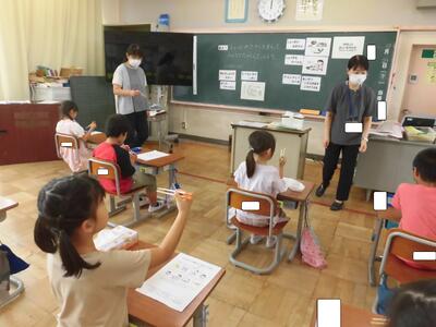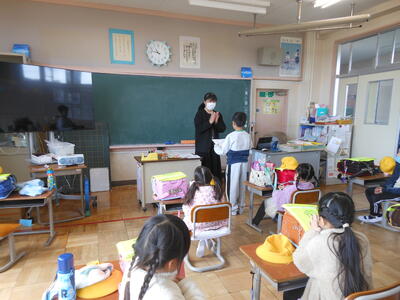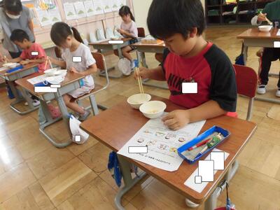 1年生の教室で、矢板小学校の栄養教諭の先生から「しょくじのマナーをまもって、みんなでたのしくたべよう」というテーマで、食に関する指導がありました。どうしてマナーを守るのか考えたり、お箸の使い方を練習したりしました。「食」は健康の源です。関心を高めて、豊かな食生活を実践する力につなげていってほしいと思います。