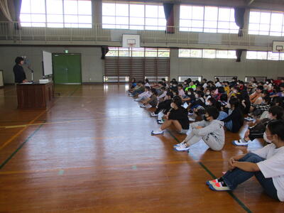 明日からの夏休みを前に、夏休み前集会を開きました。校長からの話の後、5校時には、各教室で、夏休みの課題や休み中の生活の注意点などについて話を聞きました。そして、一斉下校となりました。