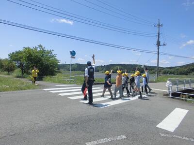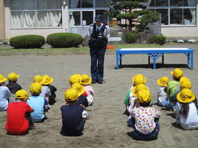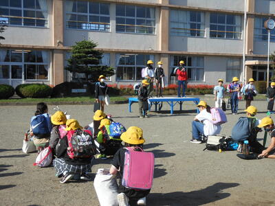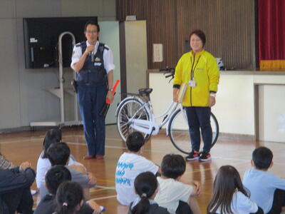 泉駐在所の警察官と市生活環境課の交通指導員のお二人を講師にお願いし、交通安全教室を行いました。1~3年生は、実際の道路に出て横断歩道の渡り方を学習しました。また、4~6年生は、自転車に乗るときのルールや点検のしかた、ヘルメットの正しいつけ方などについて、話を聞いたりDVDを視聴したりして学習しました。絶対に交通事故に合わないように、意識を高くもって生活してほしいと思います。