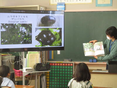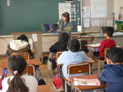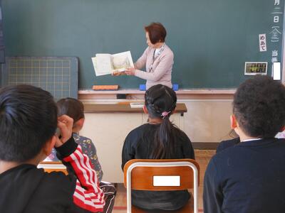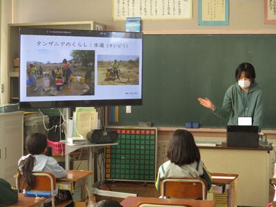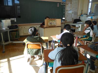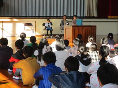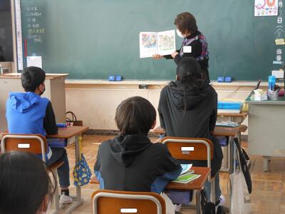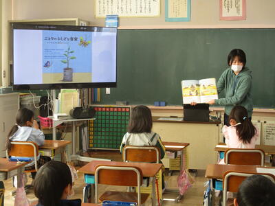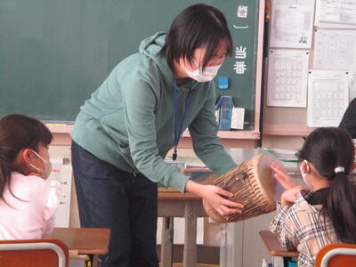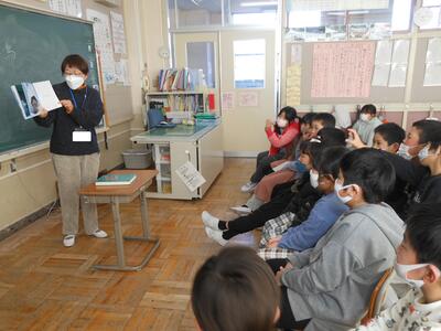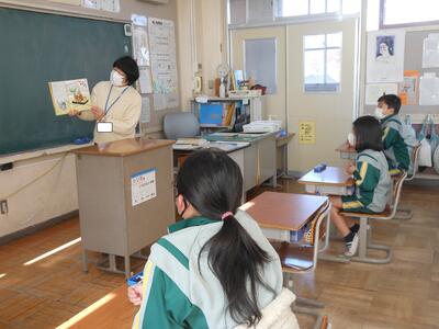 今年度7回目の読み聞かせがありました。2年生の教室では、国際協力を考える絵本を読み聞かせてもらいました。この絵本は、宇都宮大学国際学部の阪本研究室が出版したもので、東アフリカ・タンザニアでの国際協力隊員の実話をもとにしたお話だそうです。研究室の学生さんが来校し、タンザニアの様子を写真で見せてくれたり、アフリカの太鼓やバオバブの実の実物を見せてくれたりしました。子どもたちは、興味深くお話を聞いていました。