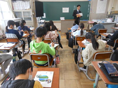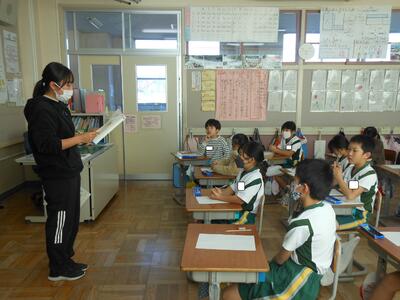 中学2年生4名が、小学校へ職場体験に来ました。26日(火)~28日(木)の3日間で、掲示物づくりや授業のサポート、草むしりなど、いろいろなことをお手伝いしてくれました。礼儀正しく、一生懸命に行っている姿にとても感心しました。「楽しかったです」という感想が聞けて、こちらもうれしくなりました。感じたことをこれからの進路にぜひ生かしていってほしいと思います。