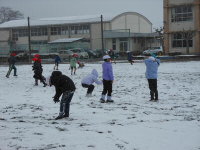 昨夜からの降雪により、学校は白く染まりました。休み時間には、雪遊びをする子どもたちの元気な声が校庭に響いていました。