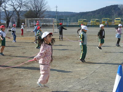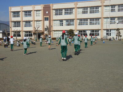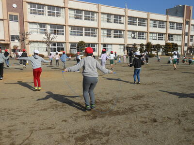 体育委員会の企画で「なわとび集会」が開かれました。前跳びで、1~3年生は1分、4~6年生は2分の持久跳びをやりました。練習の成果を発揮しようと、みんな一生懸命でした。体育委員による模範演技もあり、体力づくりの意欲が高まりました。
