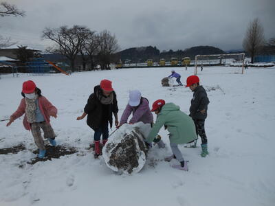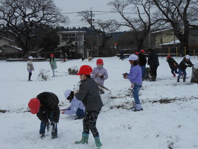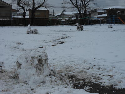 昨日から降り続いた雪が、景色を一変させました。積雪のため今日は、2時間遅れの登校となりました。昼休みには、雪だるまを作ったり、雪玉を投げ合ってりして、雪遊びを満喫していました。校庭には、いくつものオブジェが並んでいました。