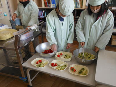 6年生が、家庭科「まかせてね 今日の食事」の単元の学習で調理実習を行いました。栄養のバランスばかりでなく、買い物の仕方や環境に配慮した調理の仕方についても考えた実習です。「ベーコンポテト」「豆腐チャンプルー」「ベーコンの野菜巻き」などが、班ごとに出来上がりました。家庭生活での実践にぜひ結び付けていってほしいと思います。