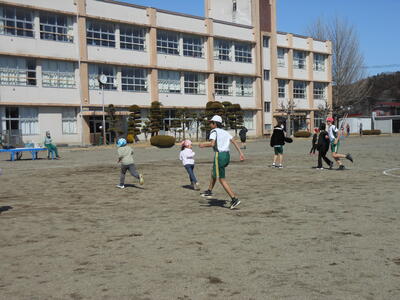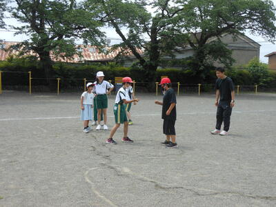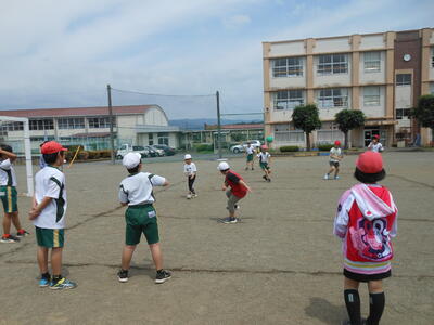 6年生が、体育の時間に大谷グローブを使って、野球をしました。大谷グローブの使い方については、6年生が、話し合い、学年順に交代で使うことなどを全校生に提案しました。今日は、さっそく6年生が、ルールを簡単にした野球で楽しみました。クラスみんなの笑顔がはじけていました。卒業間近の6年生にとって、よい思い出になりそうです。