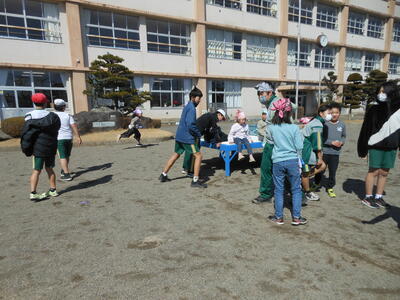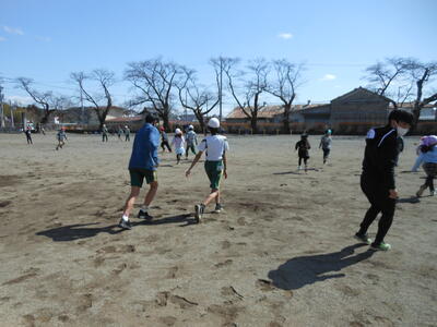 今日のふれあいタイムは、なかよし班での遊びでした。今までやったことのない遊びを6年生が提案してくれました。ルールを丁寧に教えてくれたので、みんなで楽しむことができました。たくさん走って、寒さも吹き飛びましたね。