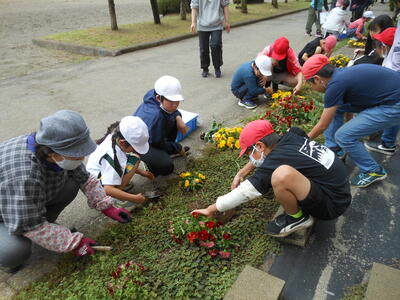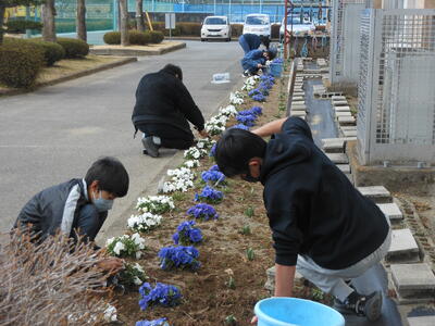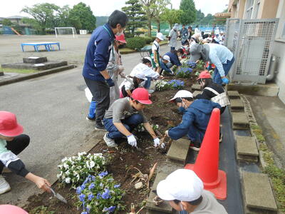 全校生で、校舎前の花壇にパンジーの苗とチューリプの球根を植えました。なかよし班ごとに作業をしました。寒い冬を乗り越え、春を迎える頃には、学校が花いっぱいになることでしょう。楽しみです。