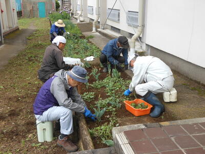 「ふれあいタイム」で、花壇整備を行いました。8つのなかよし班ごとに、パンジーやチューリップを抜き、雑草もきれいにとりました。コミュニティ・スクールの方々にもお手伝いいただいて、短時間できれいに整備することができました。夏の花壇への準備ができました。